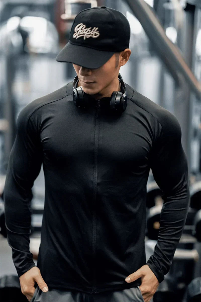 Men's Compression Jacket cardigan zipper Shirts Light Weight Slim Fit Long Sleeve Workout T-Shirts gym elasticity coat men tops