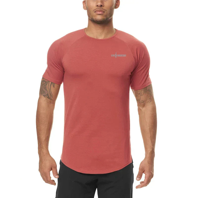 Men's Gym Fitness Clothing Man Cotton Sports Short Sleeve T-shirt Running Training Slim Printed Shirt Sweatshirt Casual Tops