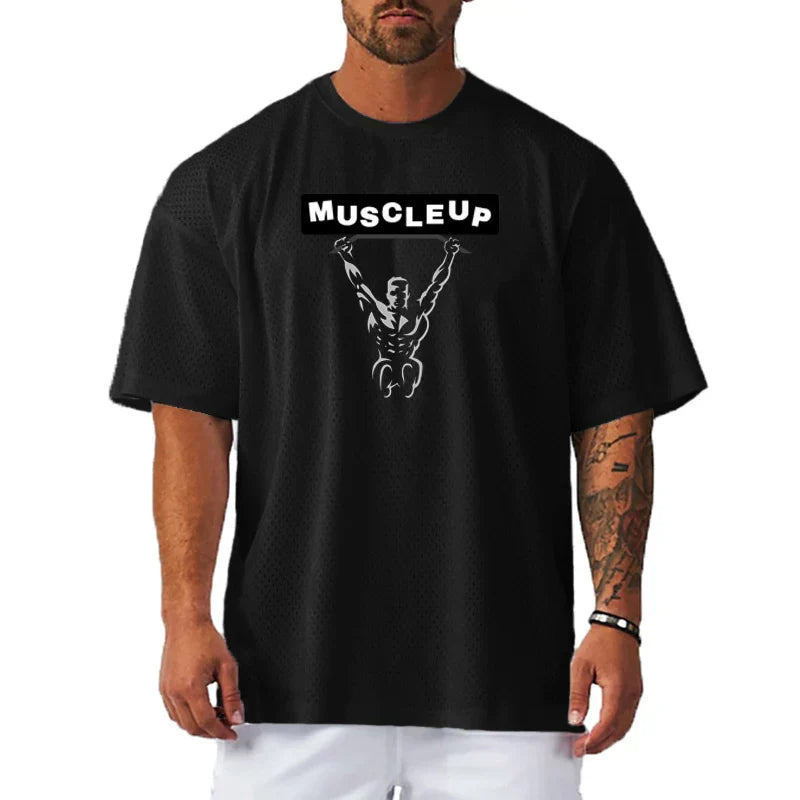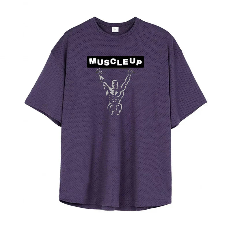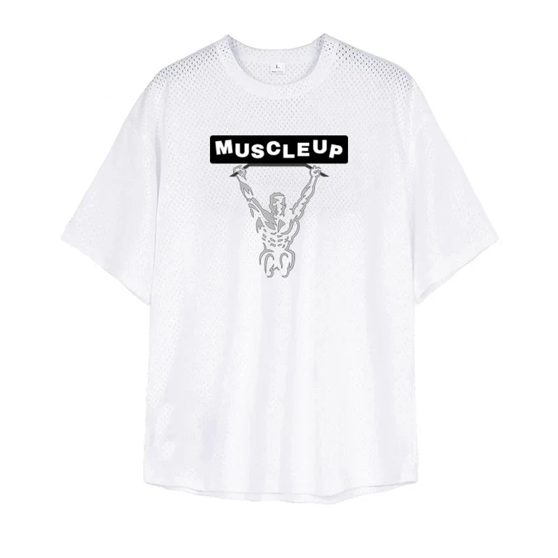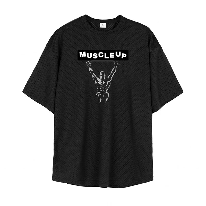 Men's Running T-Shirts Oversized Fitness Half Sleeve T Shirt Summer Gym Muscle Up Mesh Quick Dry Breathable Loose Sport Clothing