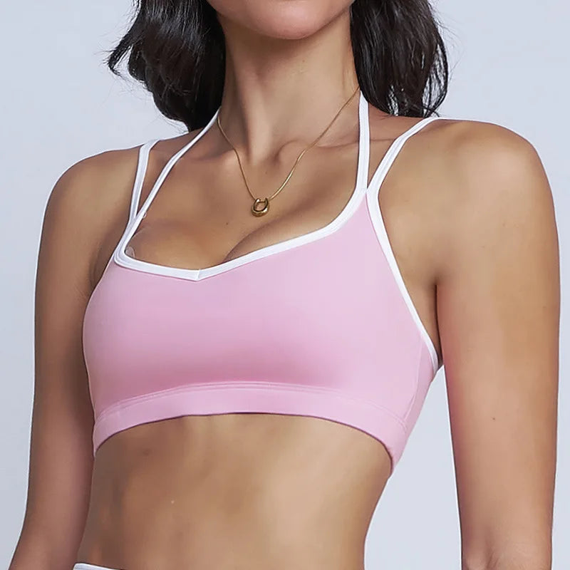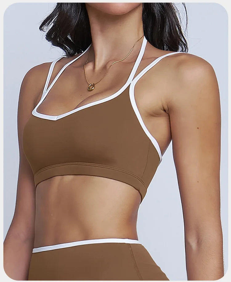 Sports Bra Seamless Halter Neck Strap Bra Open Back Fitness Yoga Top Bras Support Women Workout Gym Crop Top