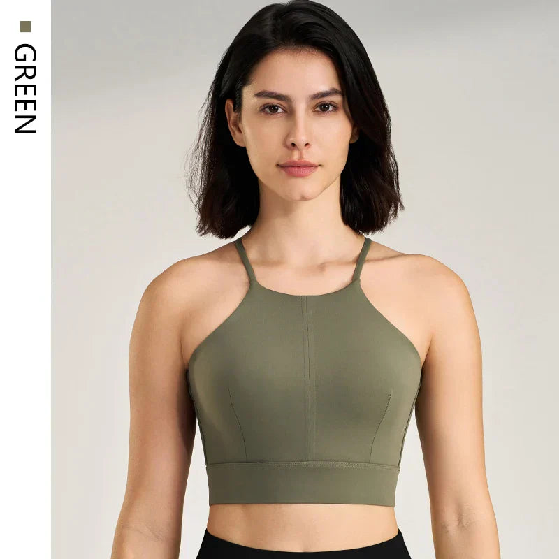 Sports Bra Seamless Halter Neck Strap Bra Open Back Fitness Yoga Top Bras Support Women Workout Gym Crop Top