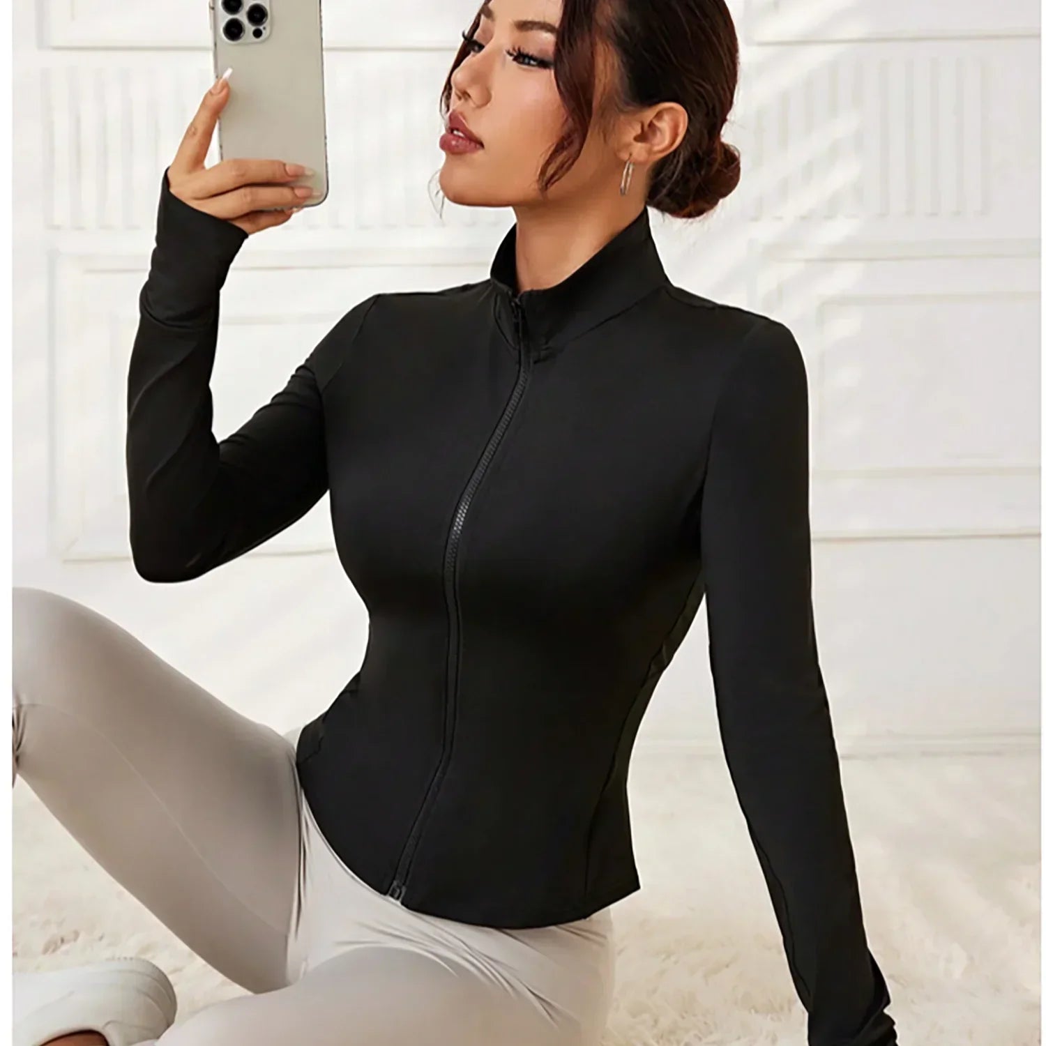 Fitness yoga sports jacket for women stand-up collar zipper sports top breathable quick dry long sleeve gym exercise clothing