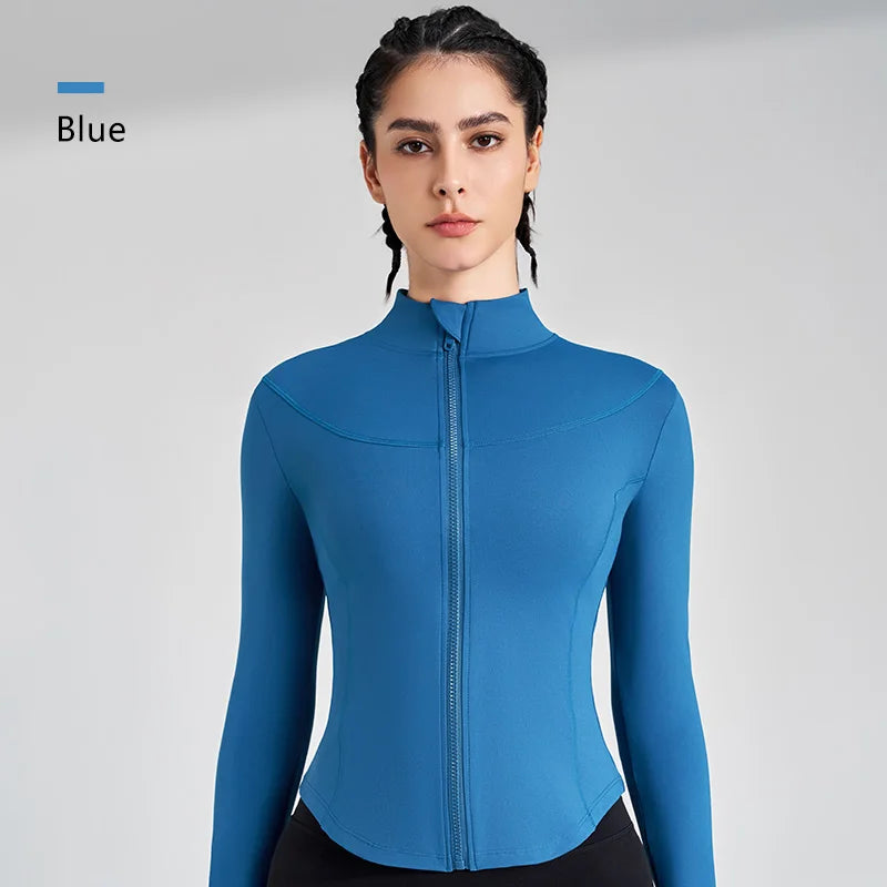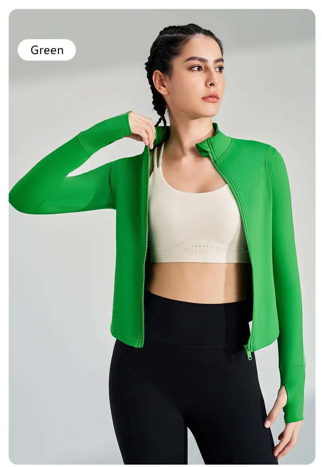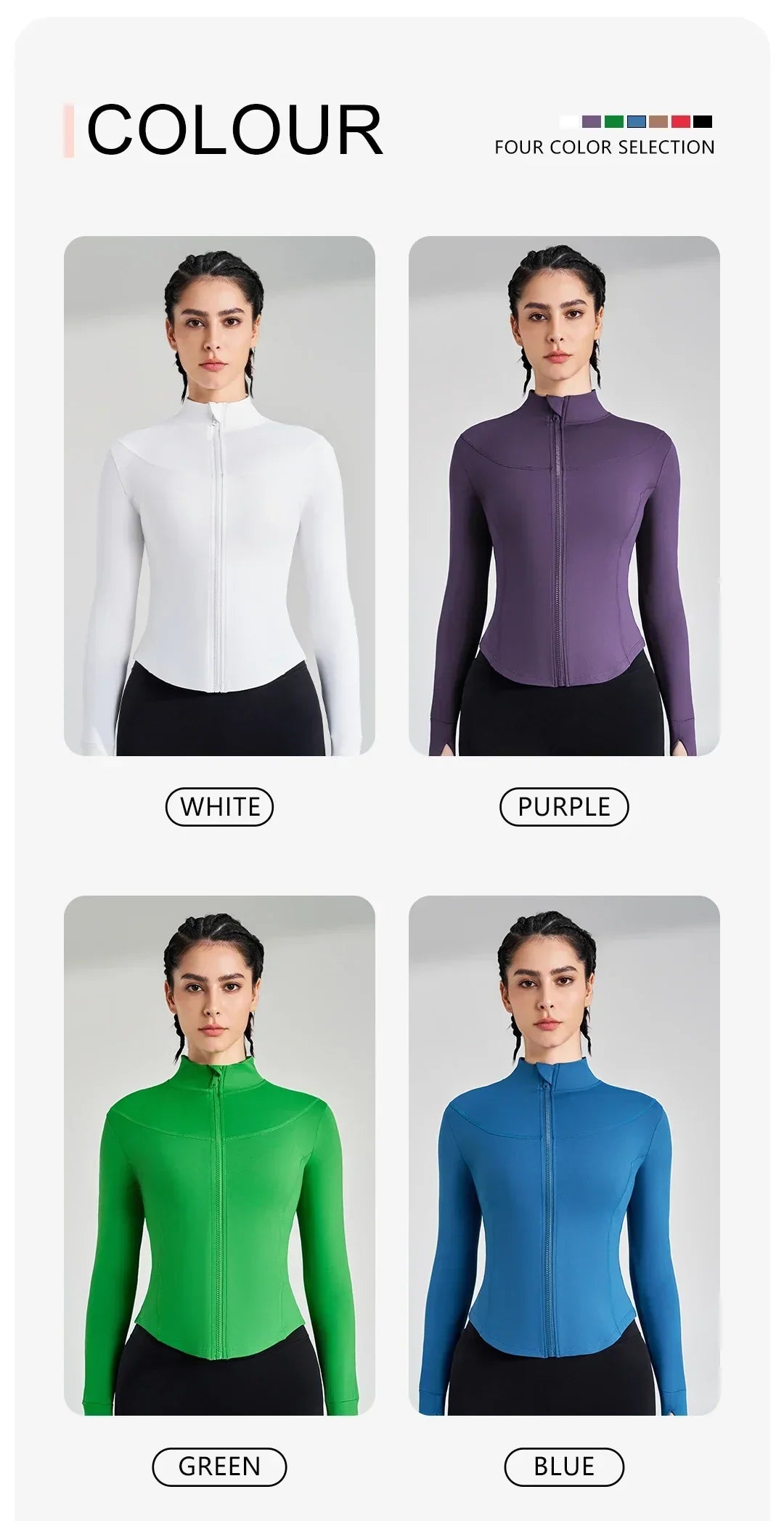Fitness yoga sports jacket for women stand-up collar zipper sports top breathable quick dry long sleeve gym exercise clothing