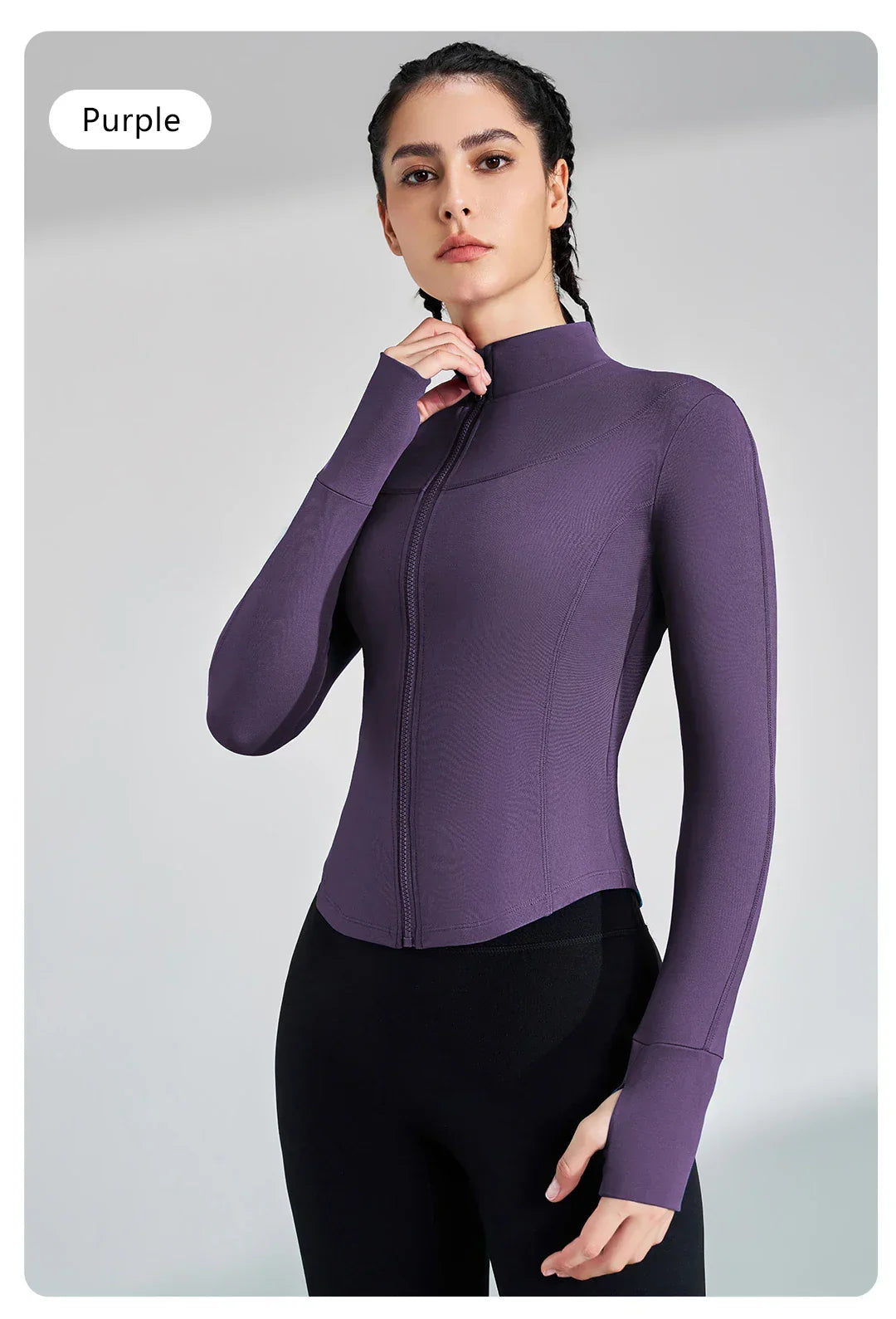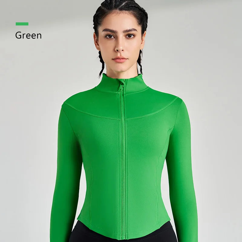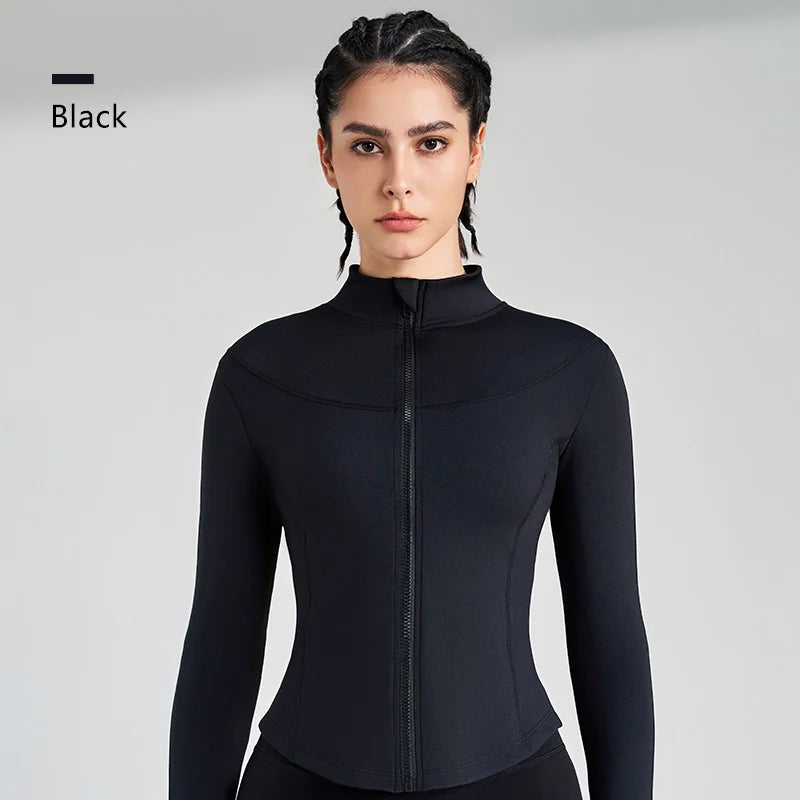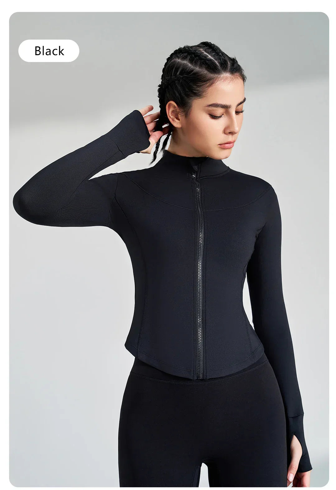Fitness yoga sports jacket for women stand-up collar zipper sports top breathable quick dry long sleeve gym exercise clothing