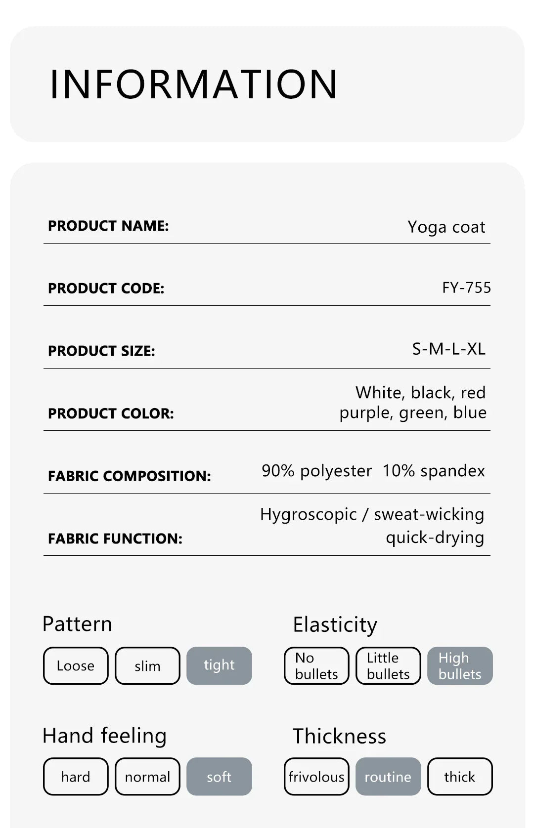 Women Yoga jacket Gym Wear zipper long sleeve fitness woman Jackets Coat