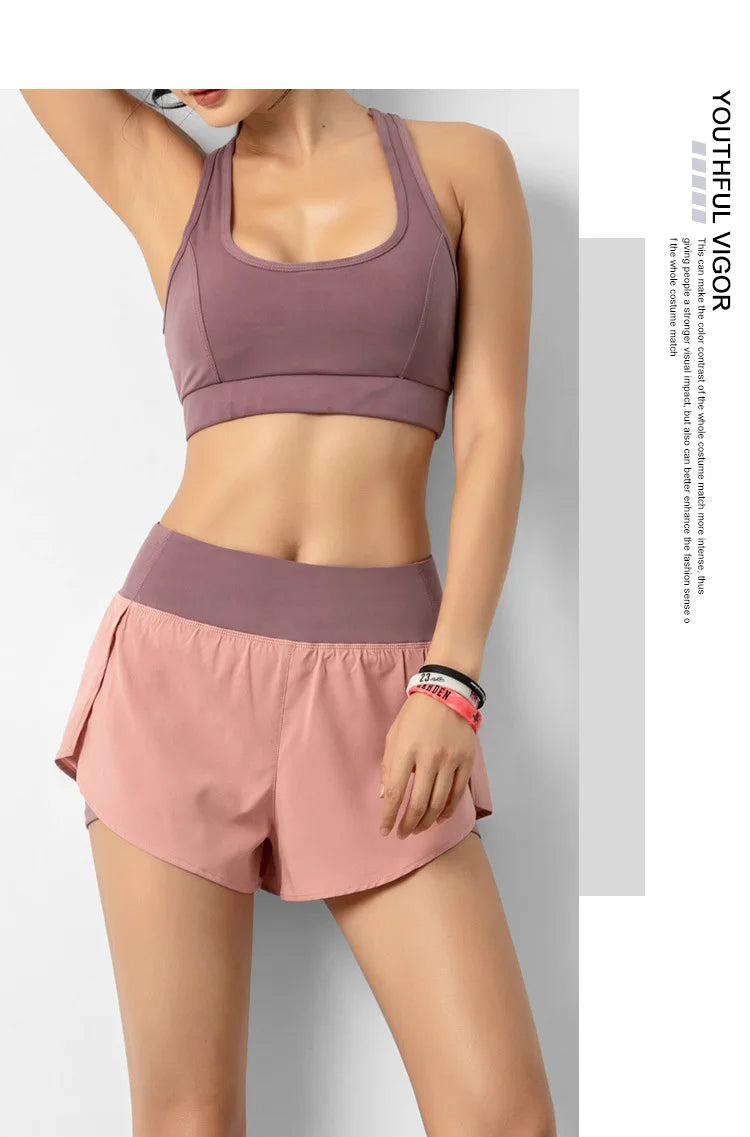 Sport Shorts Women Sportswear Double-deck Running Shorts Yoga Bottoms Summer Gym Fitness Training Jogging Short Pants