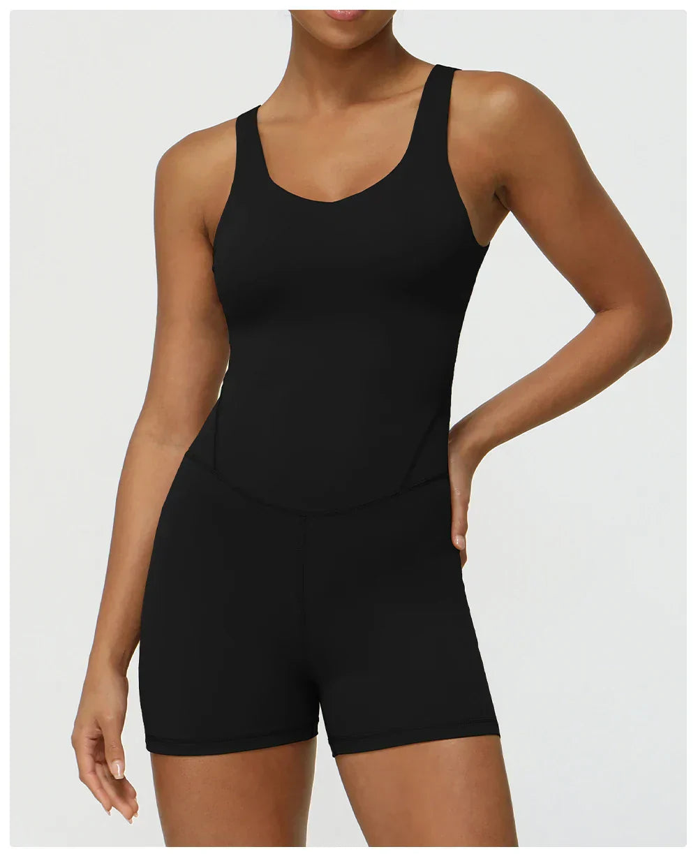 Women Fitness Jumpsuit Sleeveless Shorts Set Tank Top Yoga Gym Activewear Training Running Jumpsuit