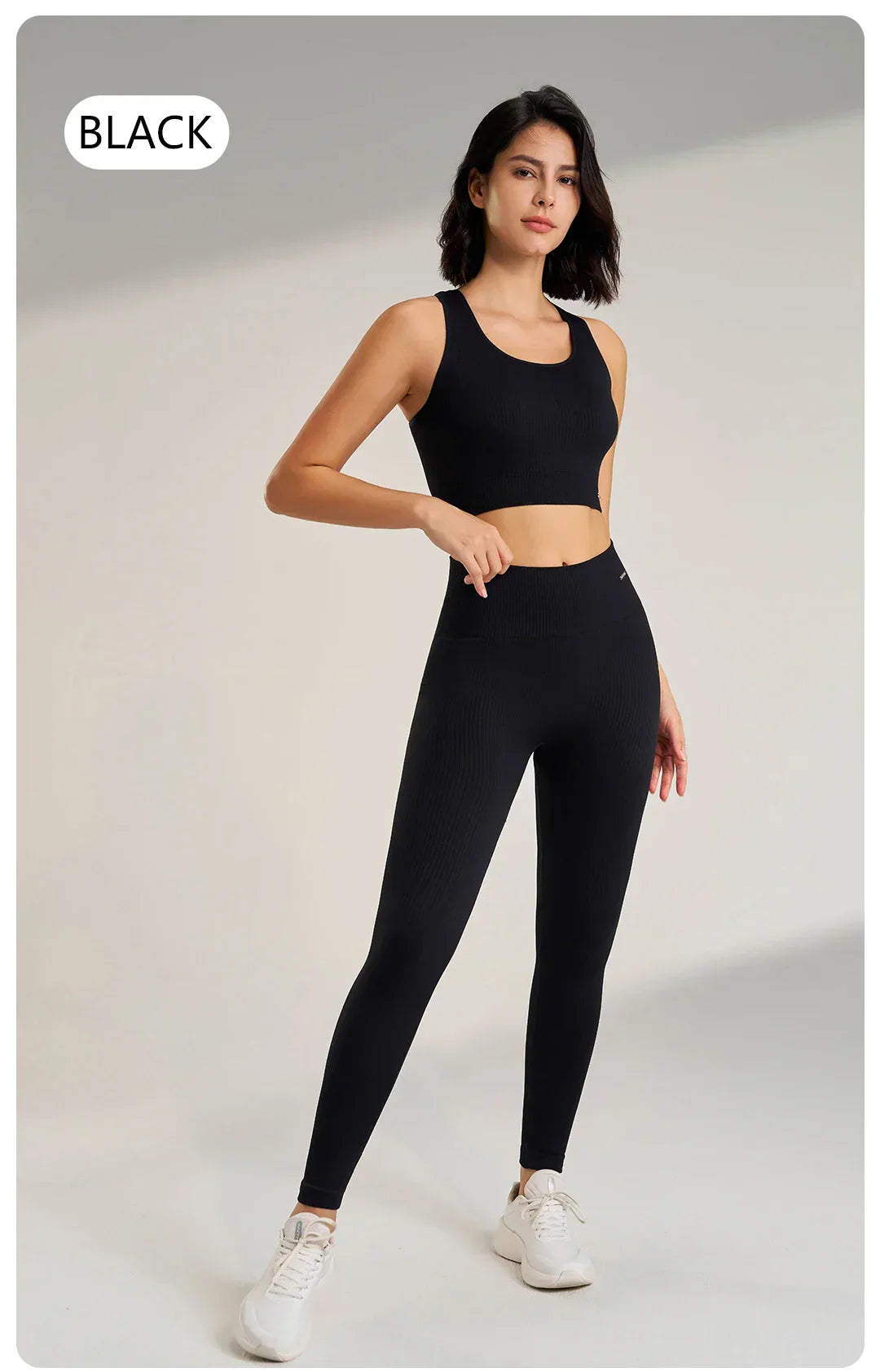 Women's Fitness High Waisted Skinny Sportswear Fitness Pants Bra Tops High Waisted Leggings Athletic Suit 2 Piece Yoga Wear