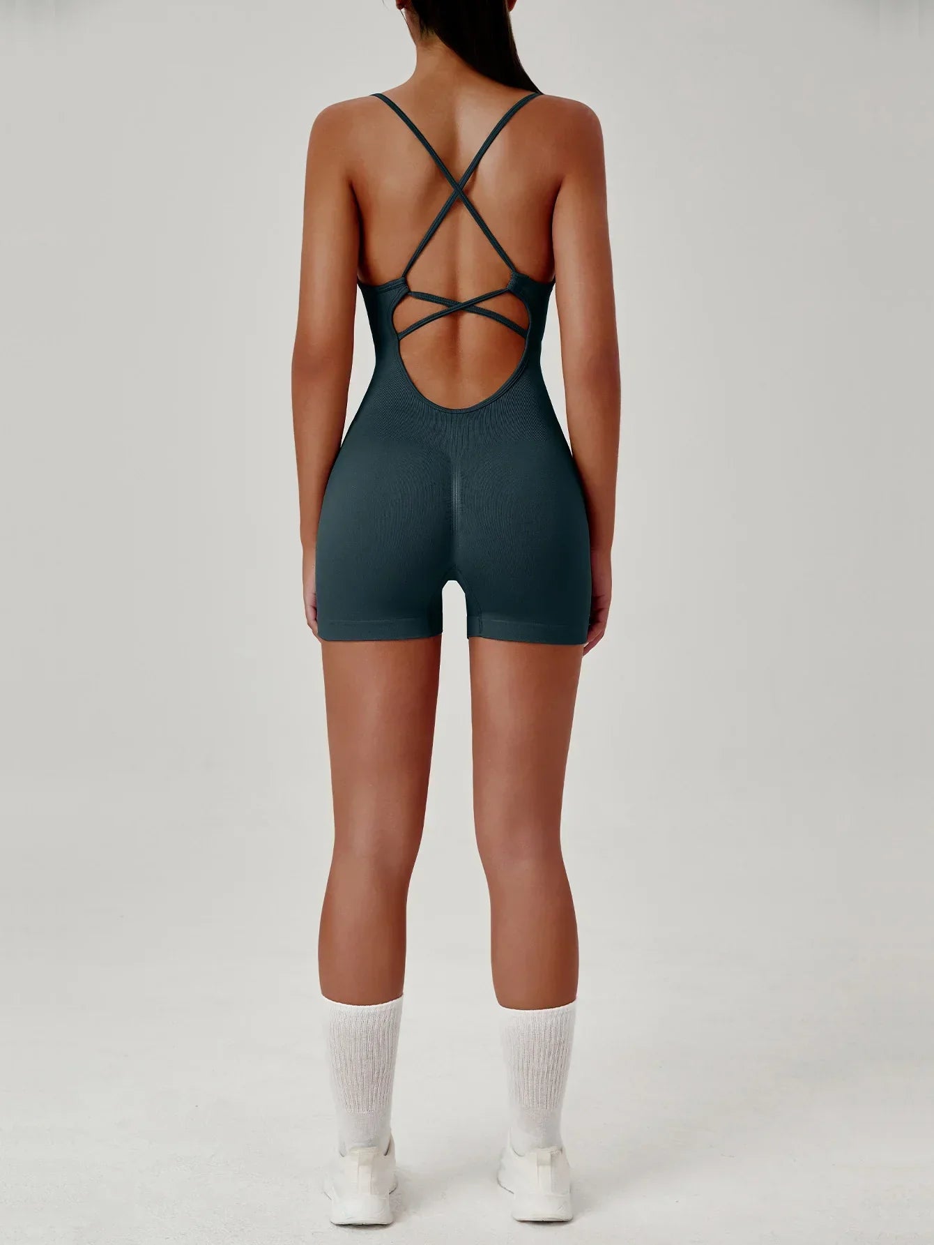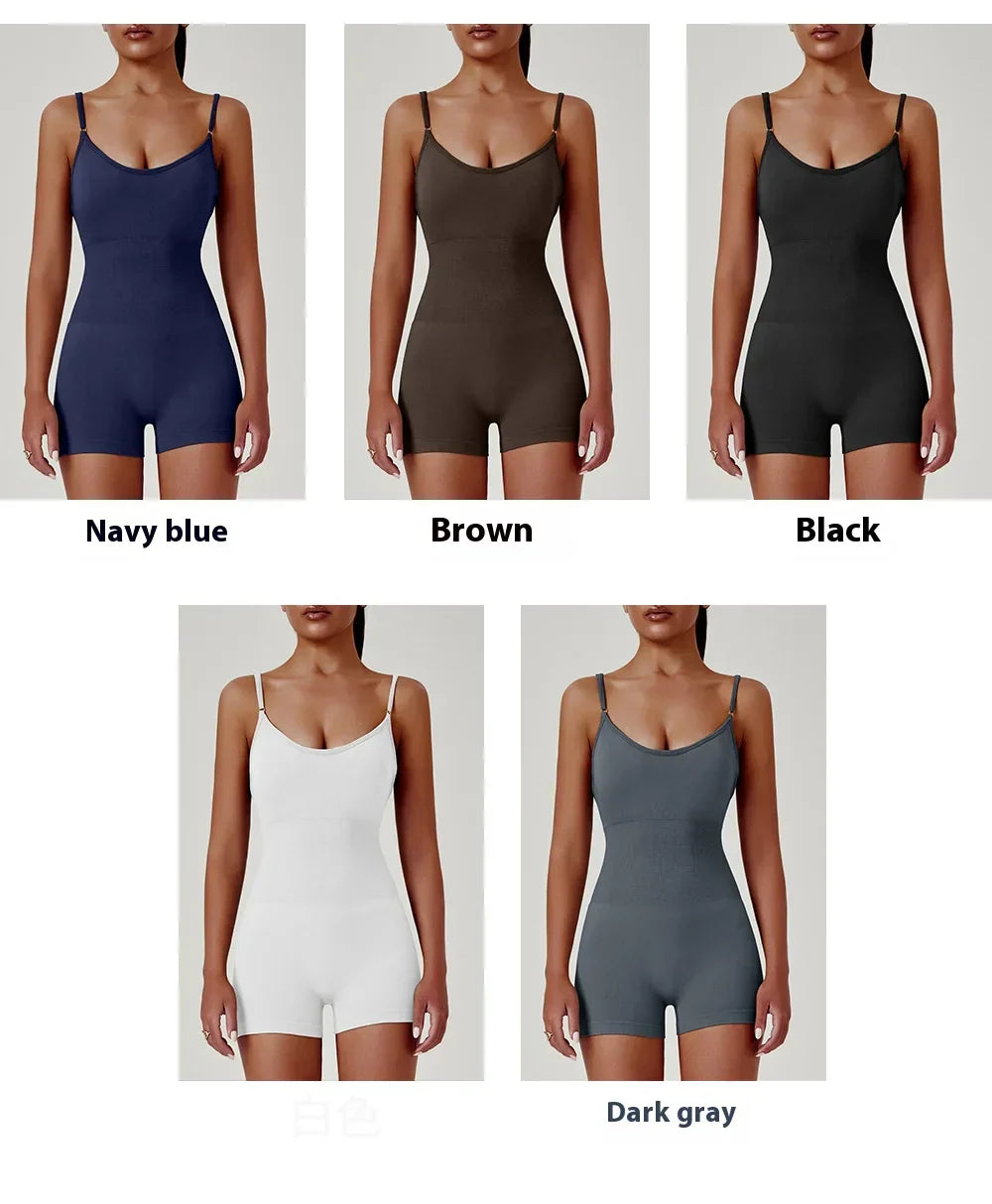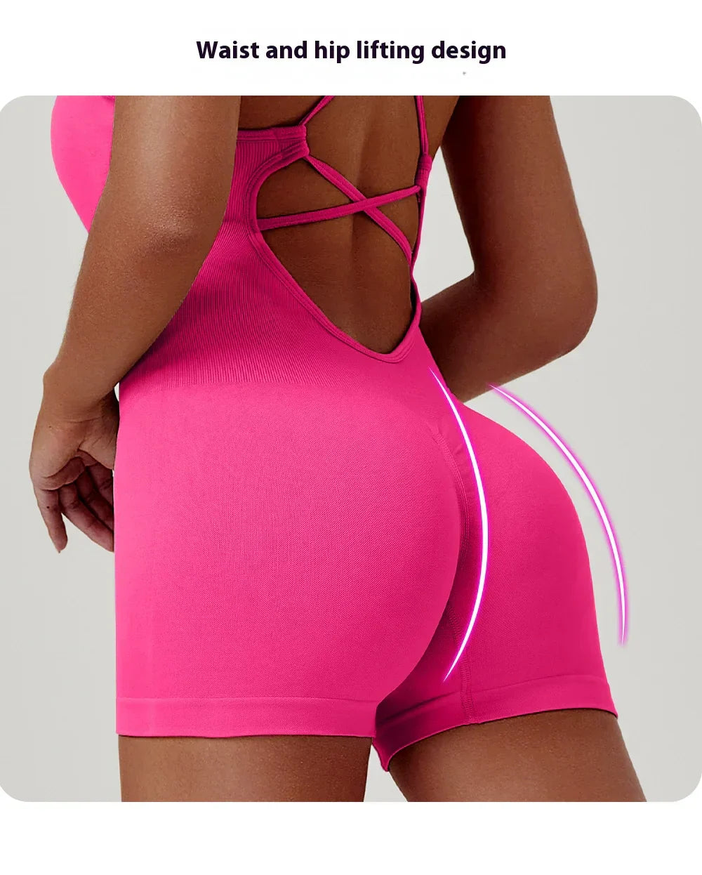 Women's Sexy Slim-Fit Yoga Shorts Jumpsuit Seamless Back Workout Bodysuit Breathable Quick-Dry Gym Running Pilates Fitness yoga
